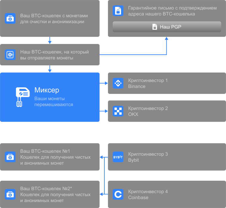 Мы обрываем любой след ваших монет и возвращаем их с прозрачной историей — чтобы никто не мог связать активы с вами.